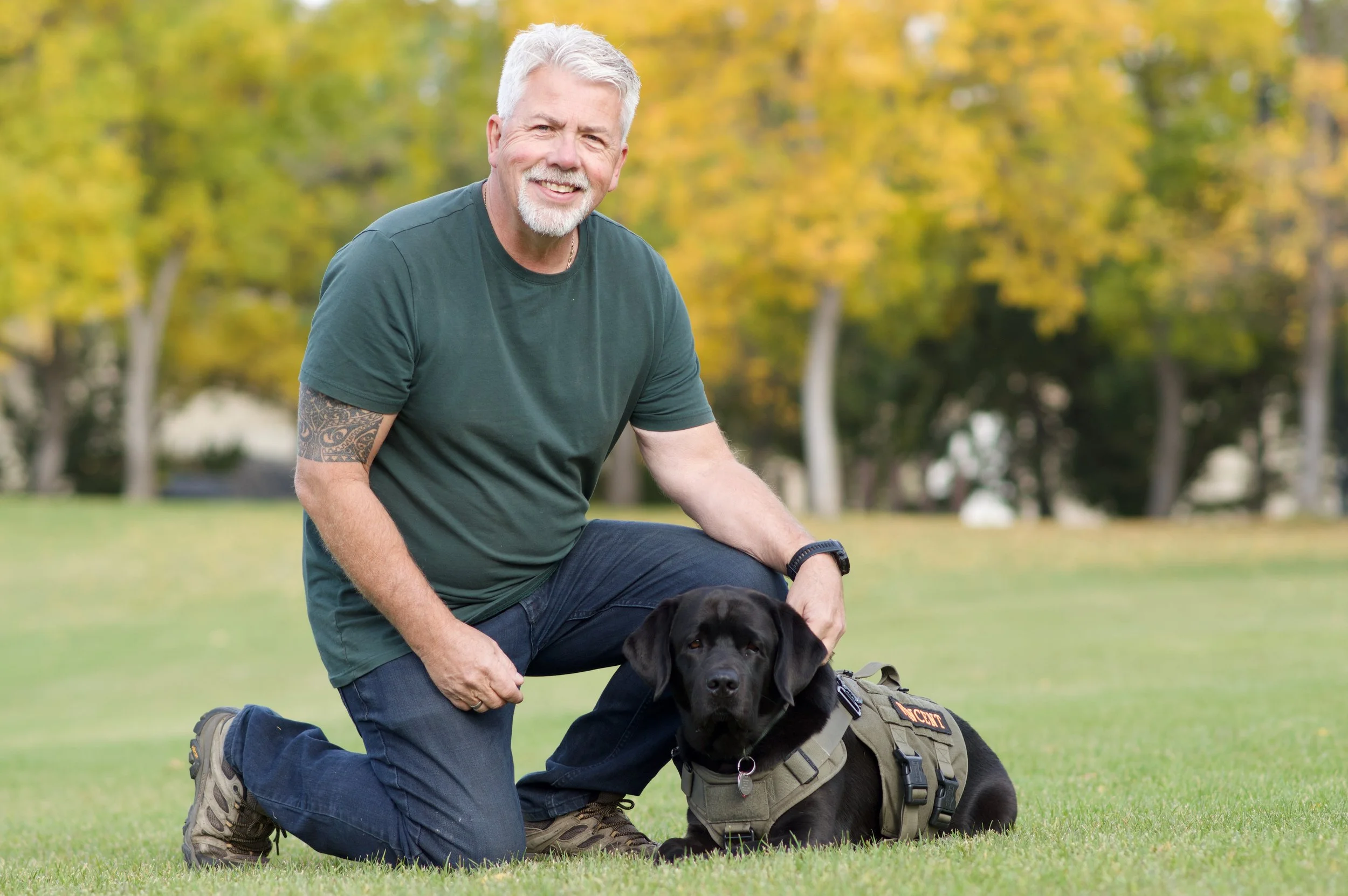 “My name is Darren. I retired in late 2020, during the COVID-19 pandemic, and obviously was very limited in what I could do. I have always loved dogs so in February of 2021 I got Vincent - a 1 year old black English Lab. Vinny and I worked hard together taking various obedience and training classes. Unfortunately Vinny lost his hearing as a result of a medication interaction so that presented me with a whole new set of challenges - teaching Vinny to respond to only hand commands. I have volunteered for most of my adult life and I began looking for opportunities to volunteer with Vinny. Some organizations were not willing to take on a dog with this type of disability. A neighbour friend told me about a group she was involved with called CAAWLS. I looked into the group and contacted the coordinator and discussed my concerns. We went through the application and testing process and in February of 2023 Vinny and I attended our first CAAWLS event - I was instantly hooked. Seeing how the group interacted with the dogs was incredible.